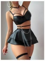 Be the first to review “Faux Leather Bra & Skater Skirt Lingerie Set with Harness Detail” Cancel reply