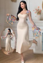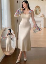 Be the first to review “Floral Embroidered Mesh-Sleeve Maxi Dress” Cancel reply
