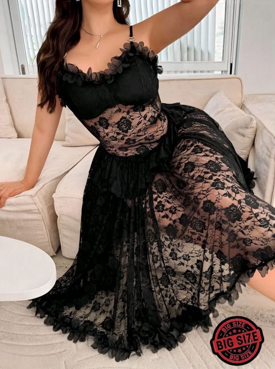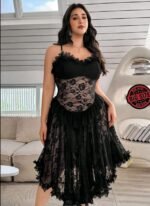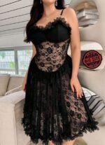 Be the first to review “Floral Lace Corset-Style Midi Dress in Midnight Black” Cancel reply