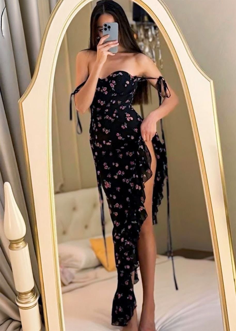 Be the first to review “Floral Print Off-the-Shoulder Maxi Dress with High Ruffle Slit” Cancel reply