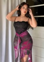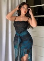 Electric Sensation: Sheer Lace Bodycon Dress Set