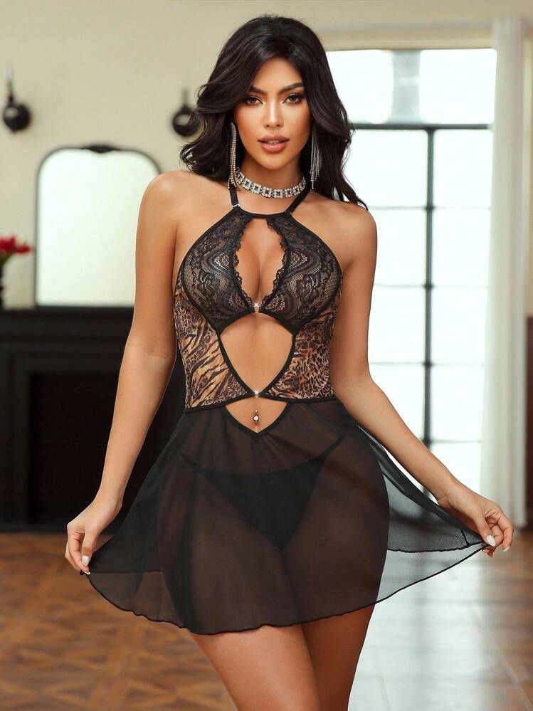 Leopard & Lace Cut-Out Chemise