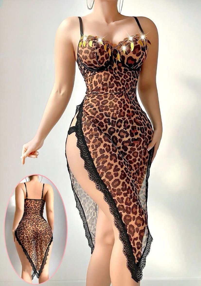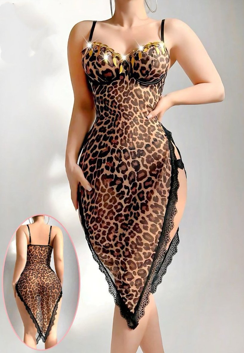 Be the first to review “Leopard Print Lace-Trim Asymmetric Lingerie Dress” Cancel reply