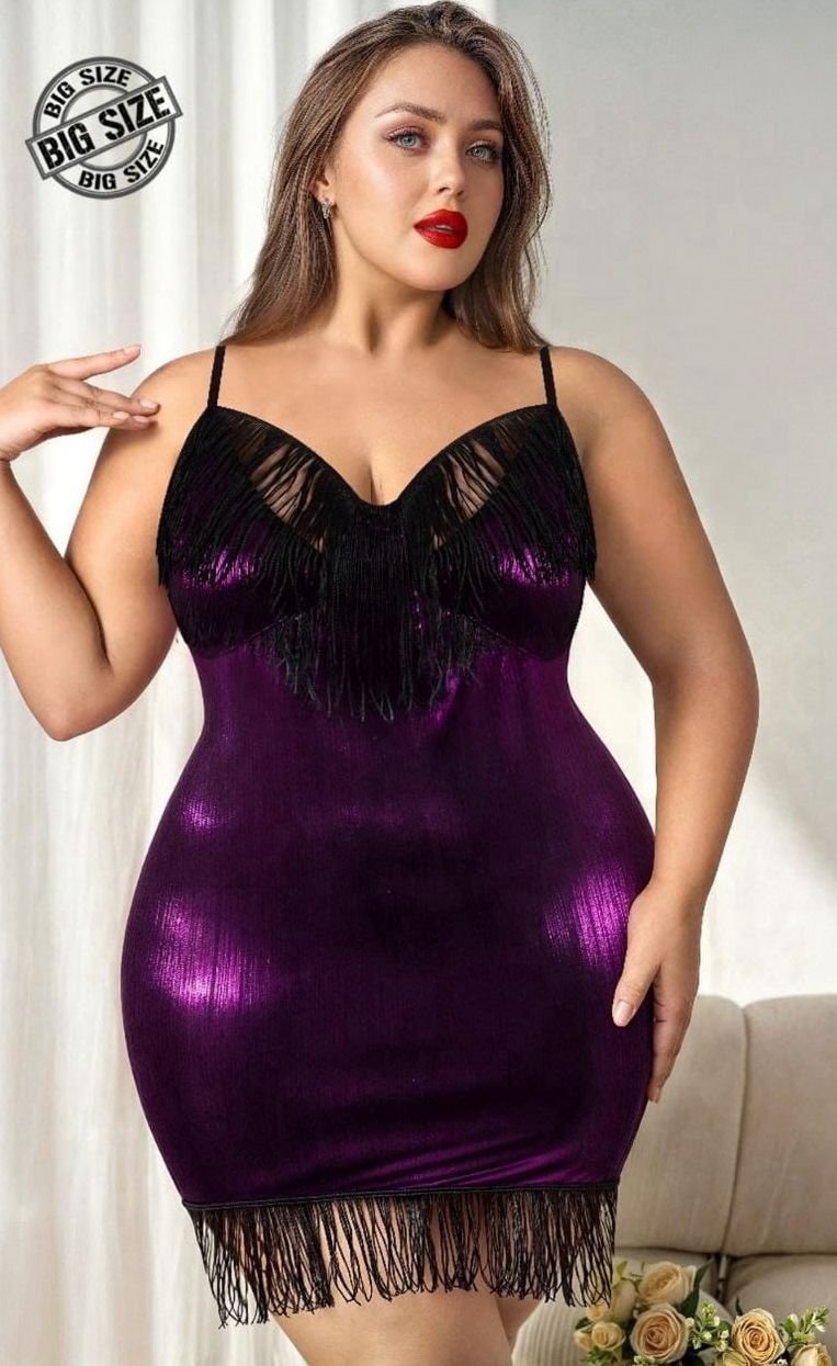 Be the first to review “Metallic Midnight Purple Fringe Bodycon Dress” Cancel reply
