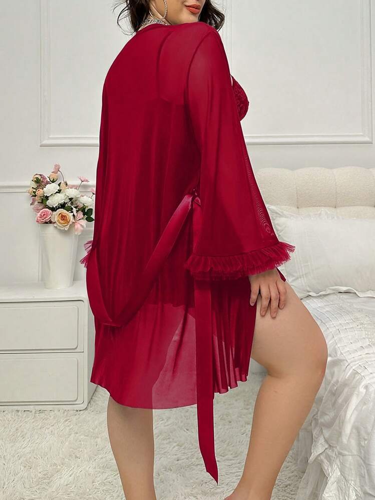 Plus Size Elegant Satin & Lace Babydoll with Oversized Front Bow