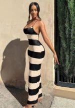 monochrome striped maxi dress