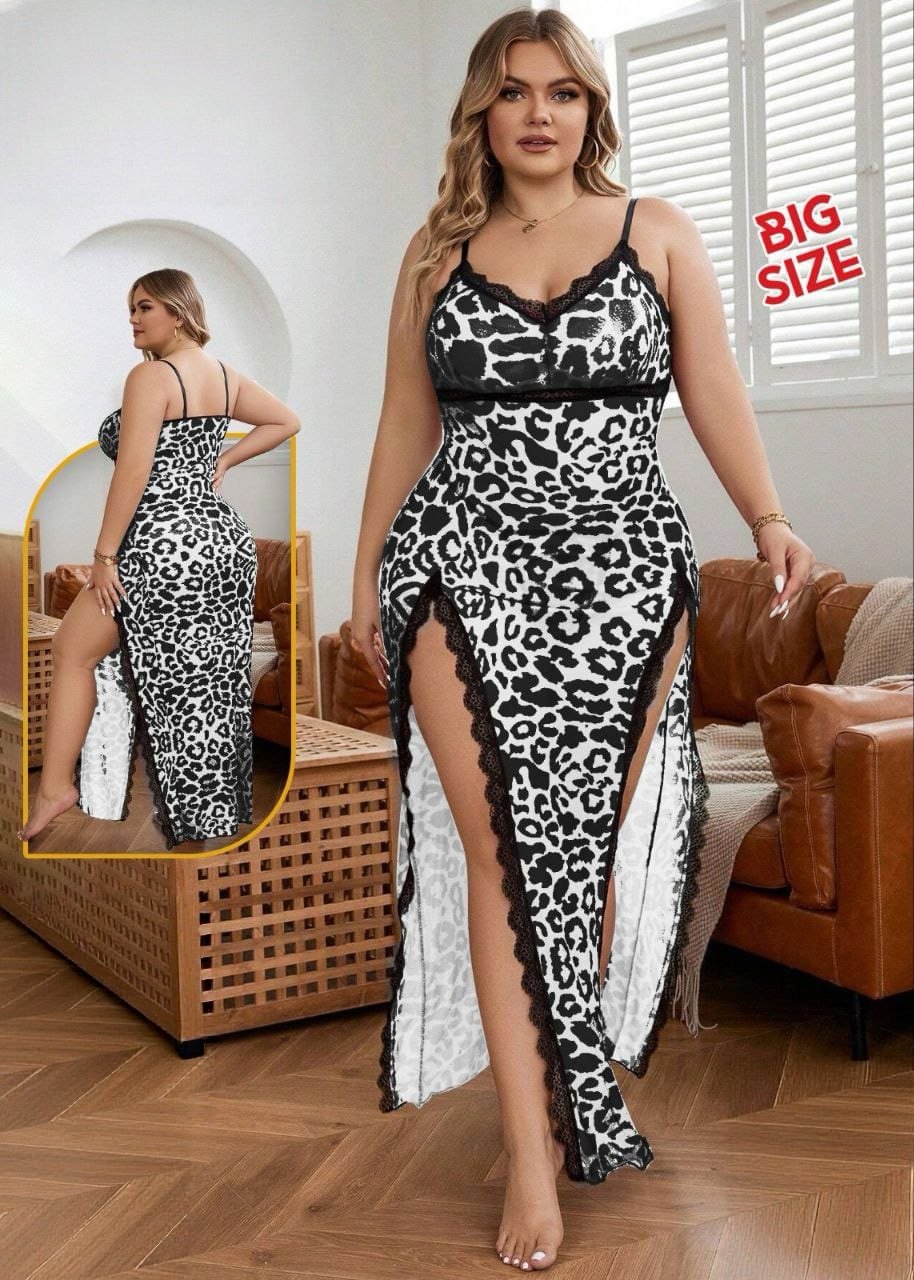 Be the first to review “Plus Size Leopard Print Lace-Trim Nightgown – Sexy High-Slit Sleepwear” Cancel reply