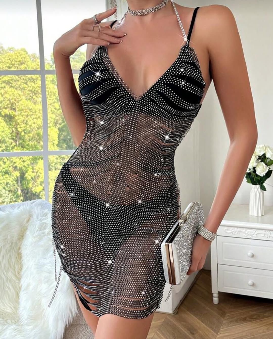 Be the first to review “Rhinestone Mesh Mini Dress” Cancel reply