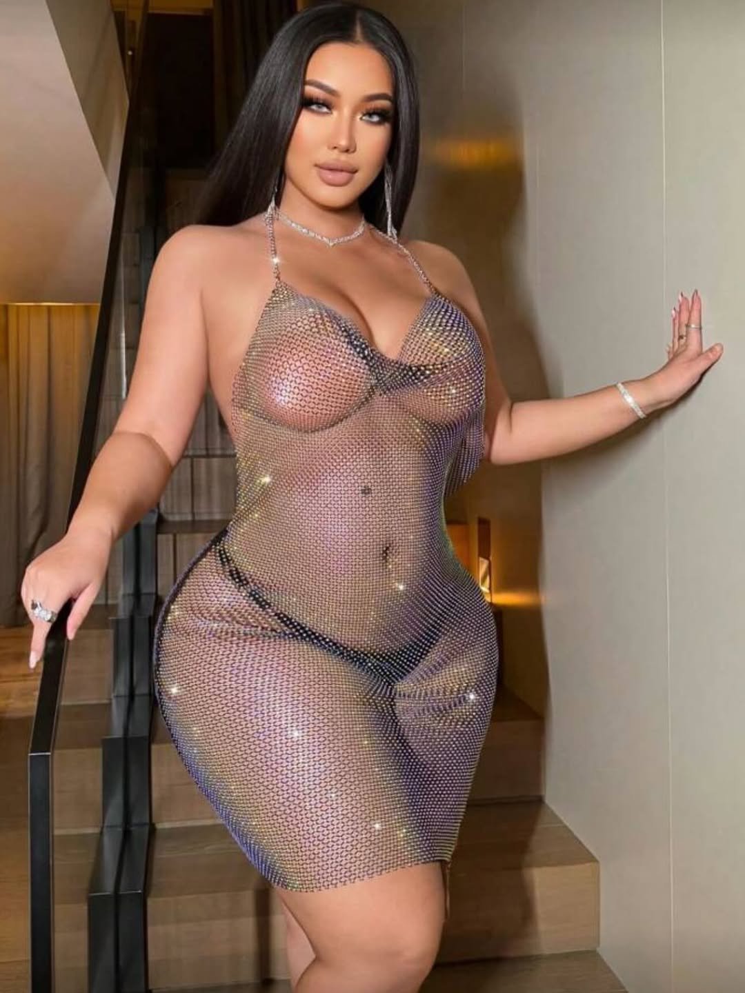 Rhinestone Mesh Mini Dress