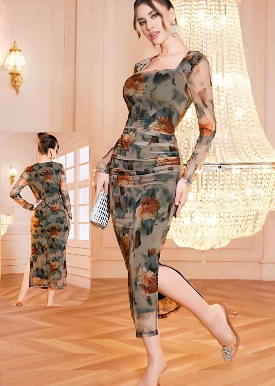 Be the first to review “Romantic Floral Mesh Ruched Midi Dress” Cancel reply