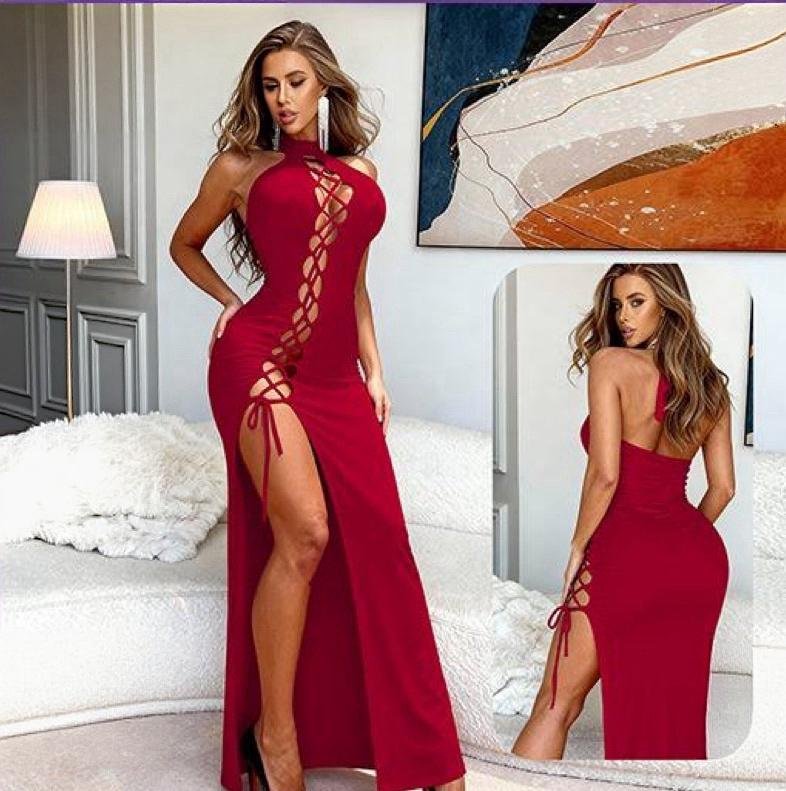 Be the first to review “Seductive Lace-Up High Slit Maxi Dress” Cancel reply