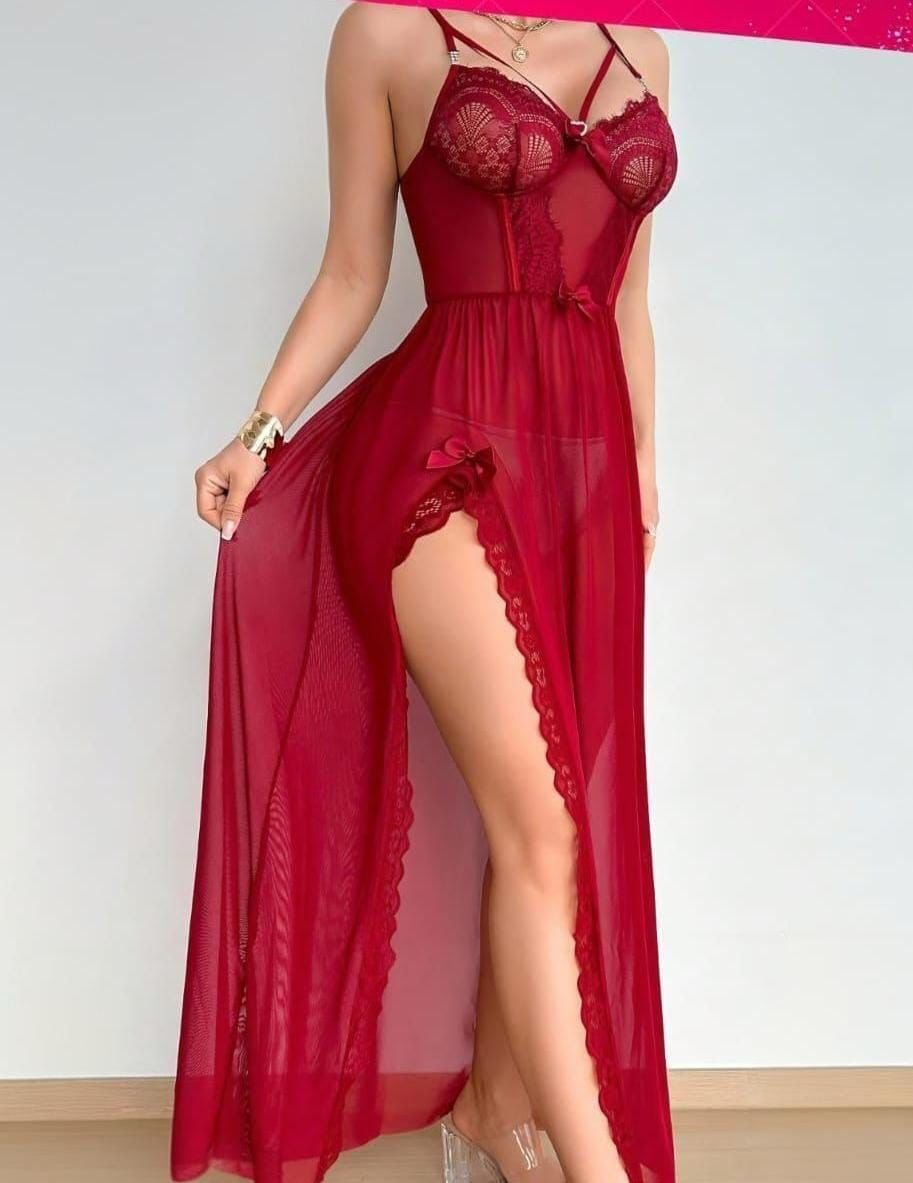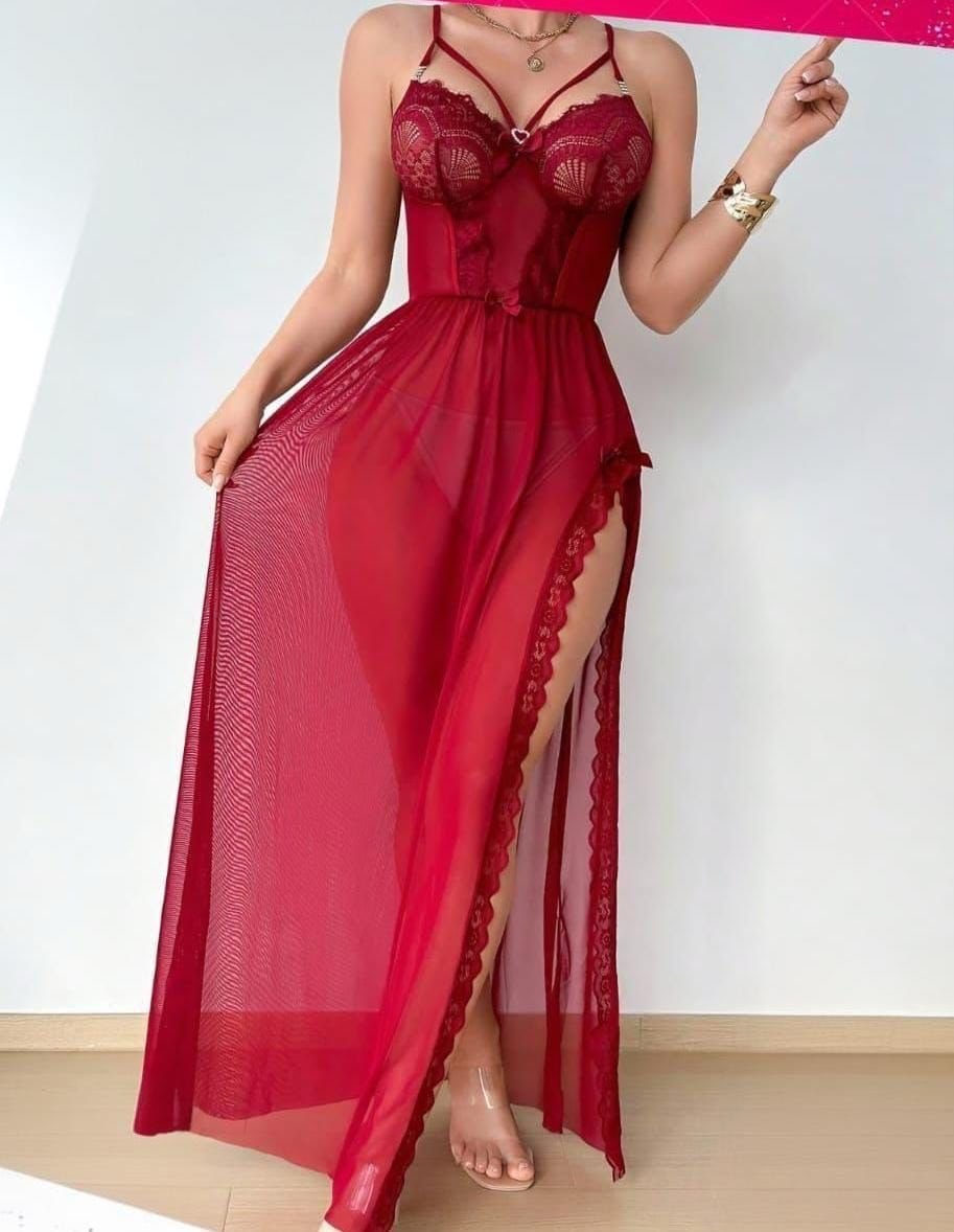 Be the first to review “Seductive Red Lace and Sheer Maxi Gown” Cancel reply