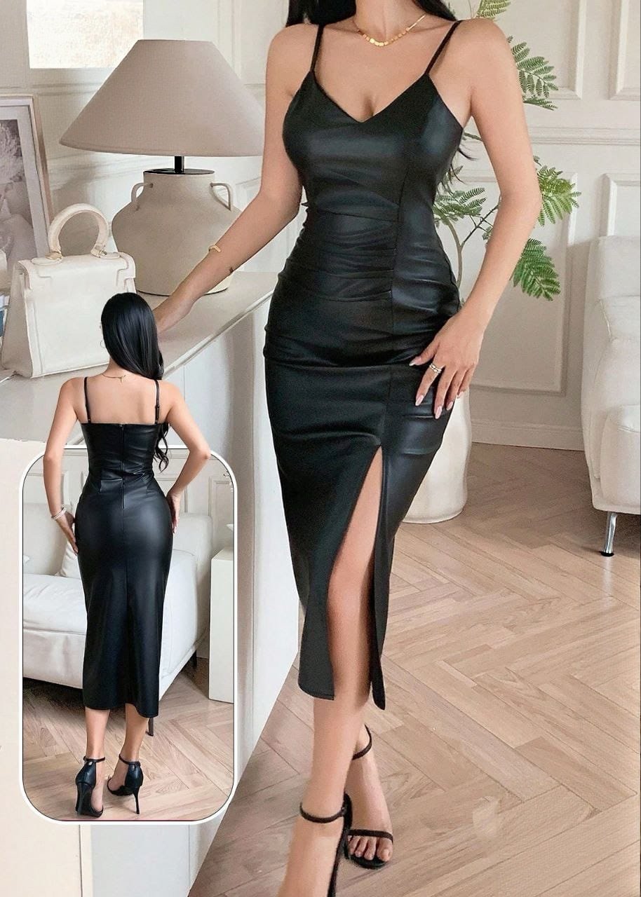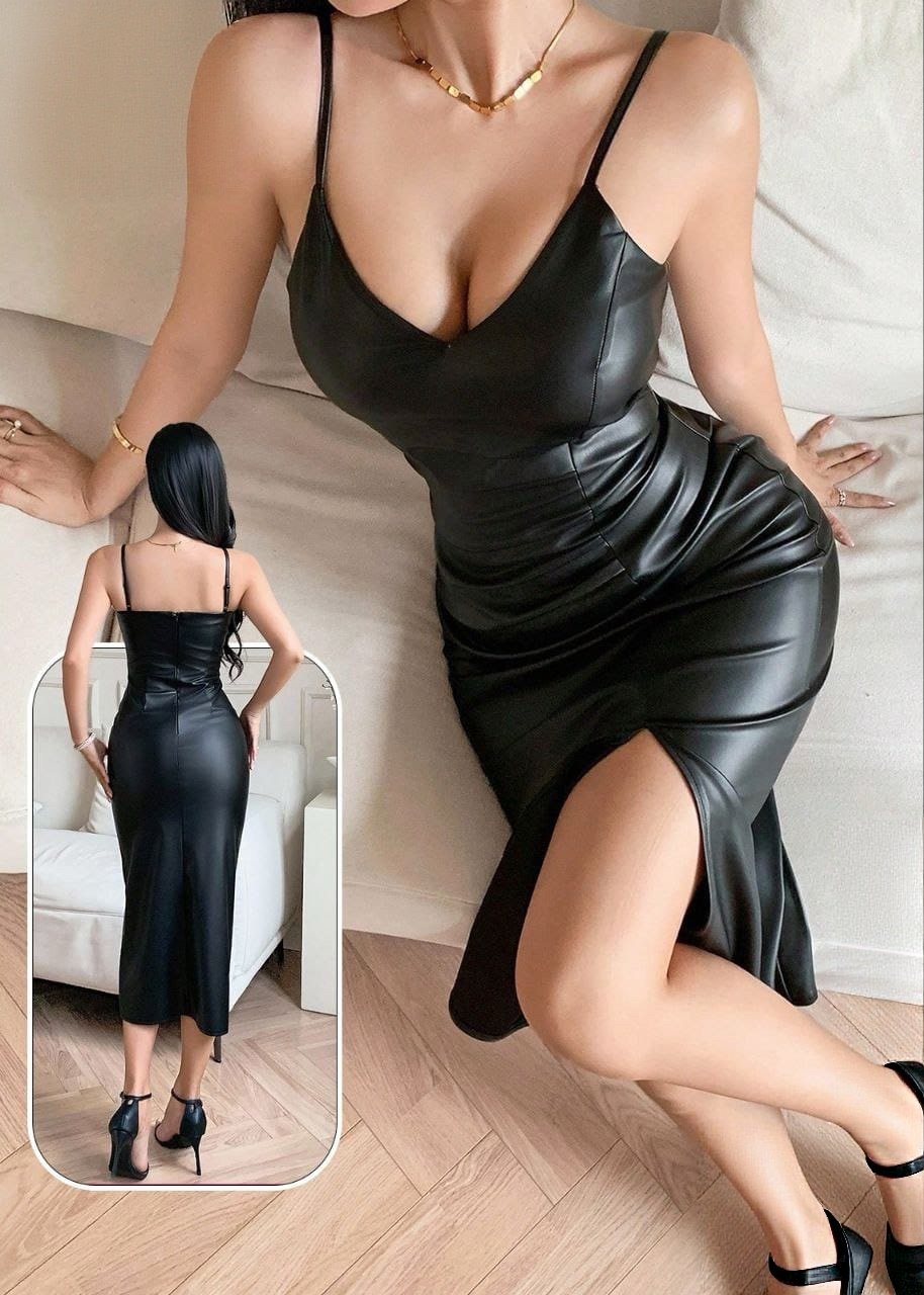 Be the first to review “Sexy Black Faux Leather Midi Dress” Cancel reply