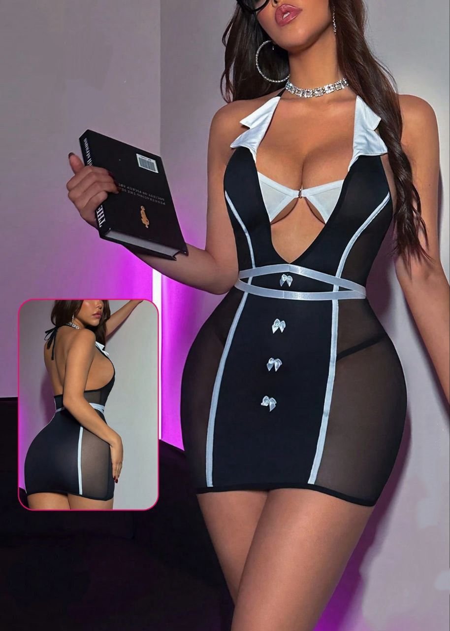 Be the first to review “Sheer Mesh Halter Mini Dress with Contrast Trim” Cancel reply