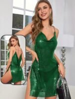 Be the first to review “Sparkling Emerald Chain-Strap Mini Dress” Cancel reply