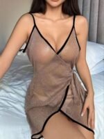 Be the first to review “Sparkling Metallic Mesh Sheer Nightgown with Drape Detail” Cancel reply