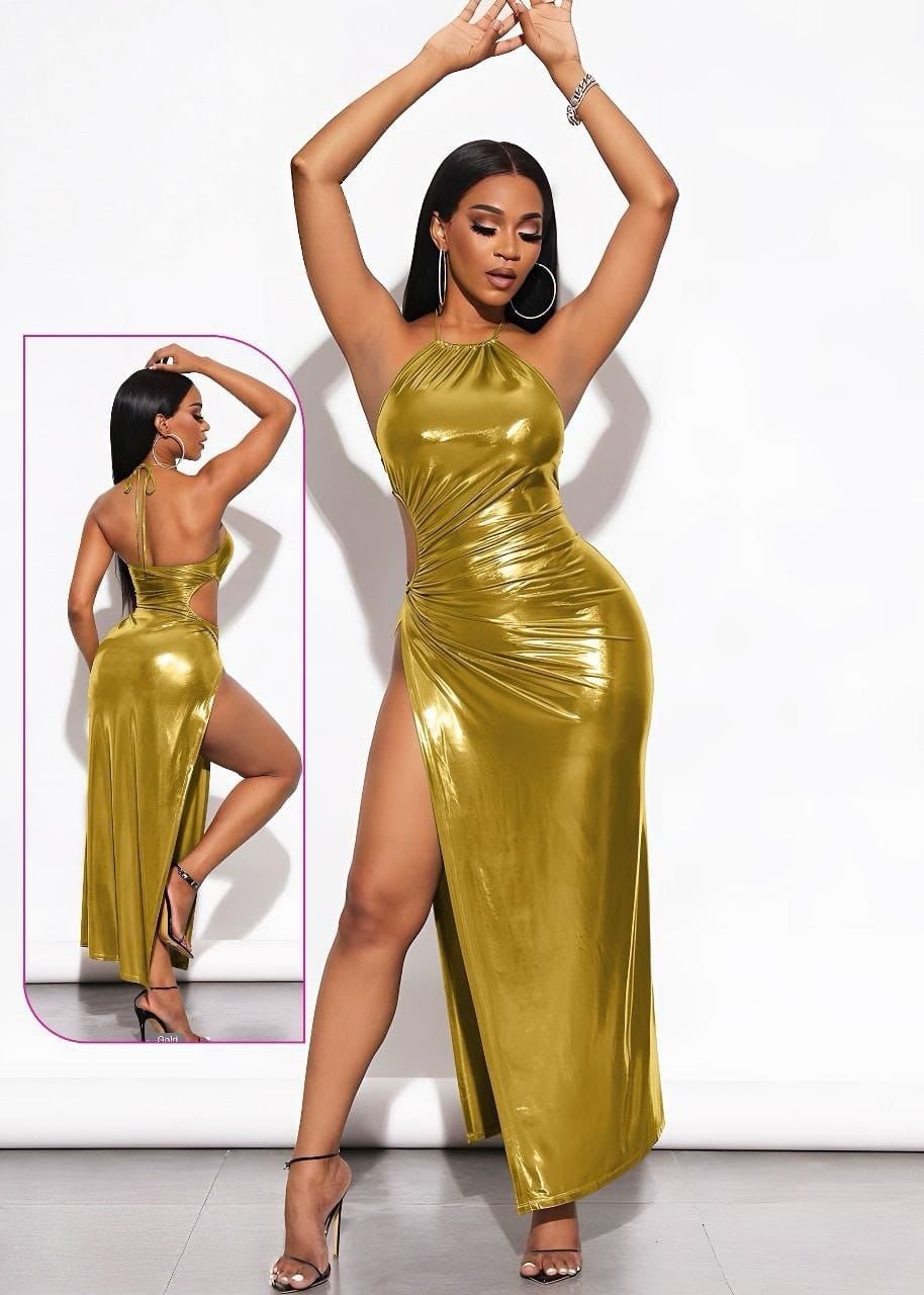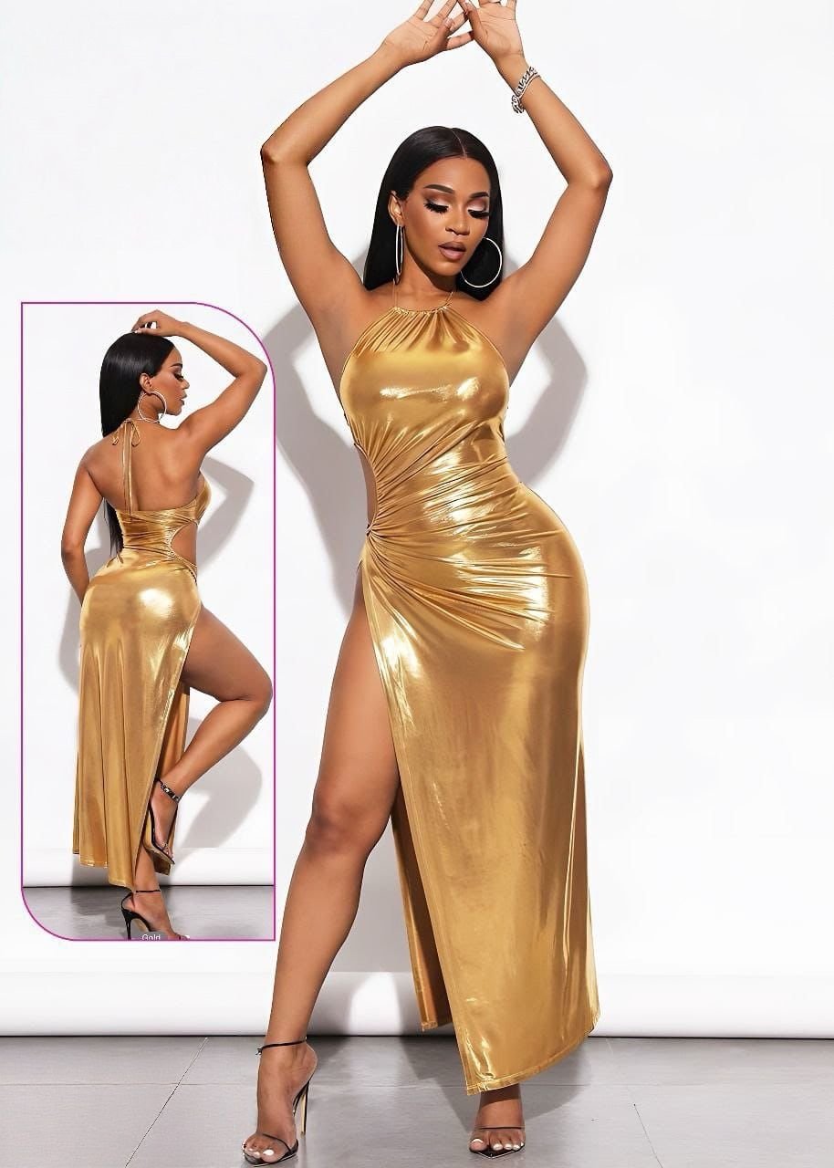 Be the first to review “Stunning Metallic Halter Maxi Dress” Cancel reply