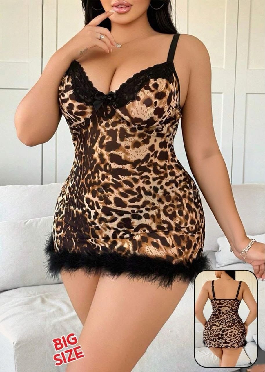 Be the first to review “Sultry Leopard Print “Big Size” Chemise with Feather Trim” Cancel reply