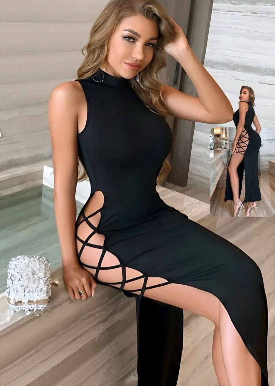 Sultry Mock-Neck Lace-Up Side Maxi Dress