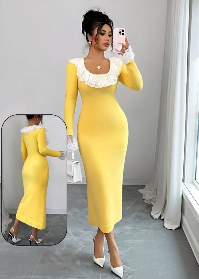Elegant Bodycon Midi Dress with Contrast Lace Collar