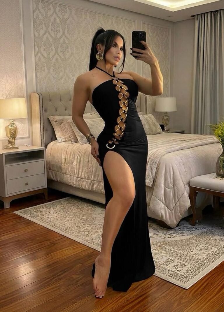 Sultry Cut-Out Halter Maxi Dress with Chain Detail