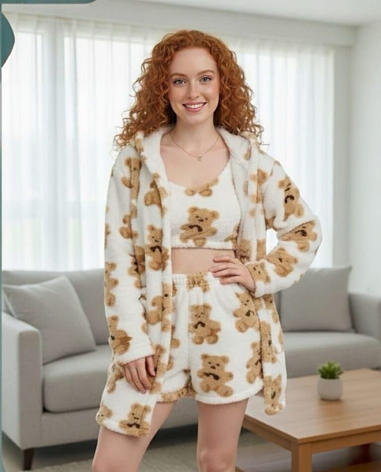 Ultra-Soft 3-Piece Teddy Bear Fleece Lounge Set